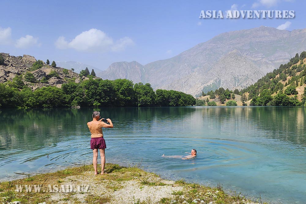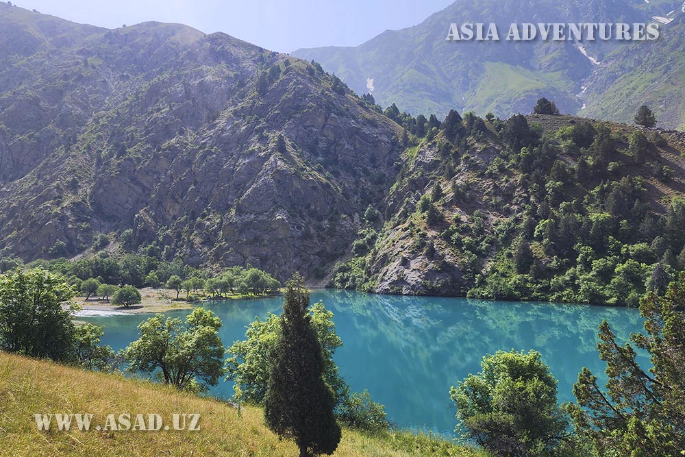 An exciting one-day trip with light hiking to one of the most picturesque mountain lakes in Tajikistan — Lake Timur-Dara. The lake is part of the Shirkent National Park and is located in the Shahrinav District of Tajikistan, 80 km from Dushanbe, at an altitude of about 1,970 meters above sea level. It is surrounded by high mountains, juniper forests, and shrubs. The lake is fed by flowing water and was formed by a tectonic landslide. It is up to 500 meters long, 170 meters wide, and 15 meters deep. The water is crystal-clear turquoise.