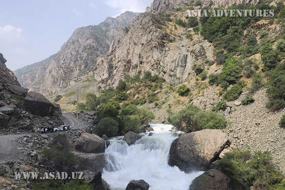09:00 – Departure from your hotel. Drive along the Dushanbe–Termez highway to the village of Shahrinav, then continue on a dirt road along the fast-flowing Karatag River to the village of Hakimi (75 km). Photo stops at scenic viewpoints along the way.